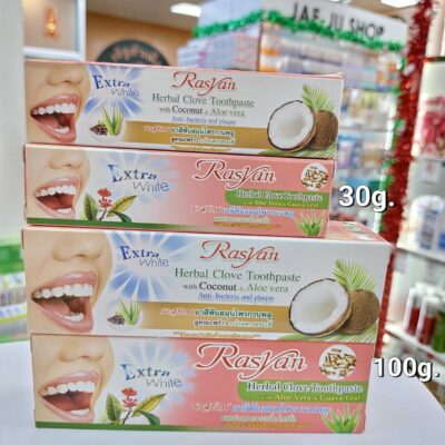 Rasyan herbal clove toothpaste ราสยาน ยาสีฟันสมุนไพรกานพลู (หลอดเล็ก) 30g.Coconut&aloe vera