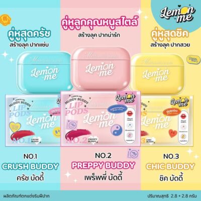 Lemon me muddy buddy lip pods เลม่อน มี บัดดี้ ลิป พอดส์ 2.8g+2.8g02.preppy buddyสีชมพู