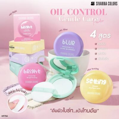 HF754 Sivanna colors oil control gentle care powder ซีเวนน่า คัลเลอร์ส ออยล์ คอนโทรล เจนเทิล แคร์ พาวเดอร์ 4g.02.Bright