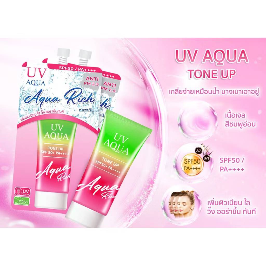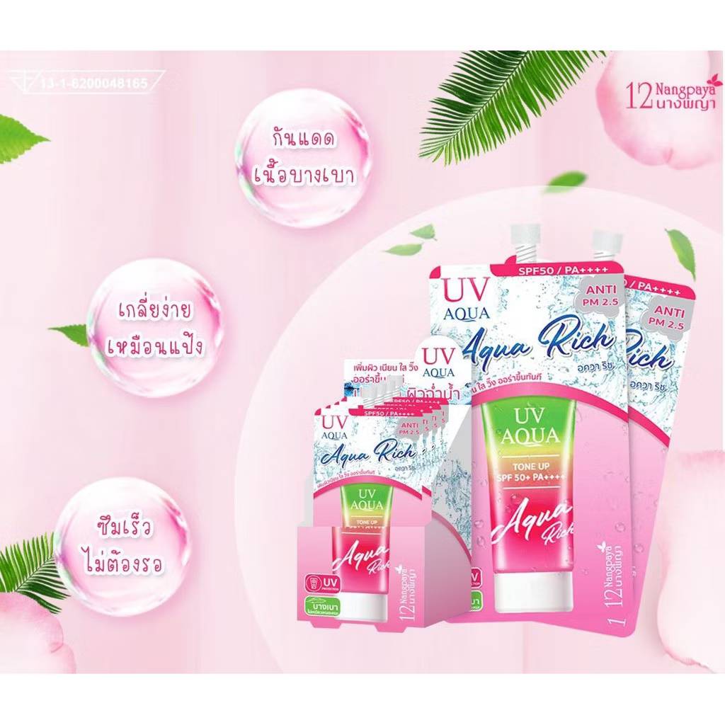 12 Nangpaya uv aqua rich spf50pa+++ กล่องชมพู10gx6pcs