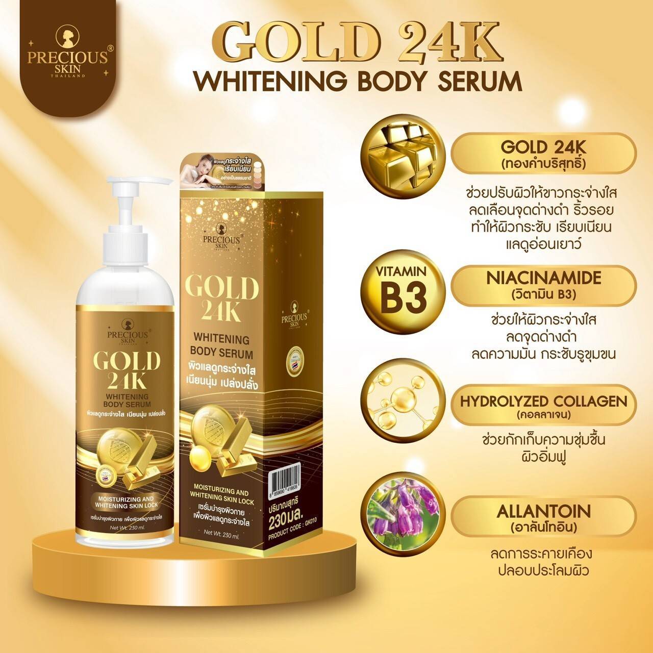 8859690416606 Precious skin thailand gold 24k whitening body serum 230ml.