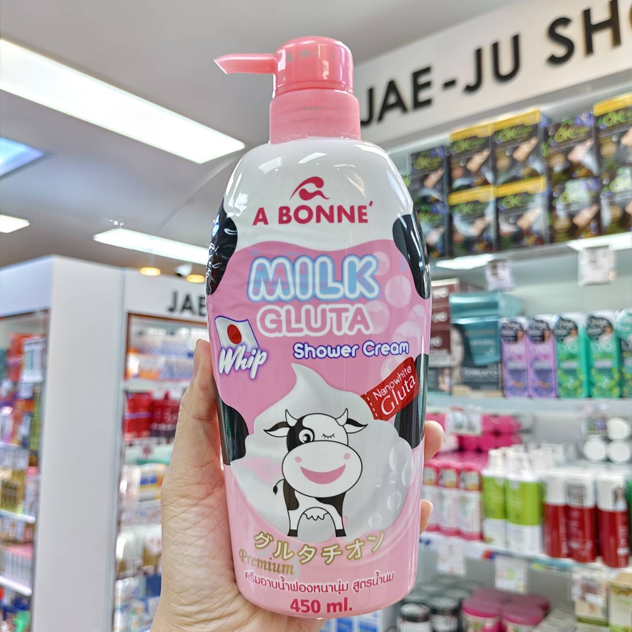 A bonne milk gluta shower cream เอ บอนเน่ มิลค์ กลูต้า วิป ซาวเวอร์ ครีม 450ml.
