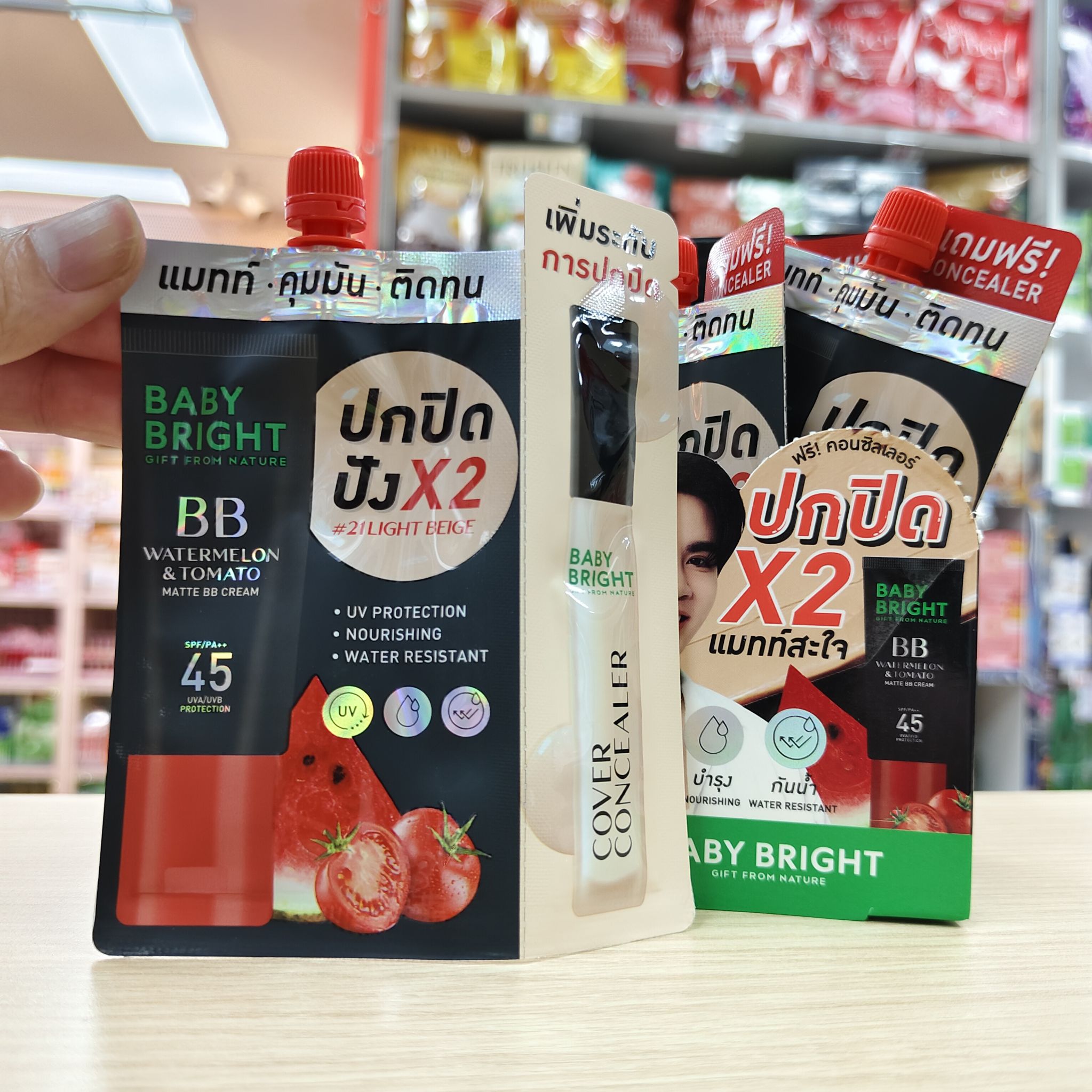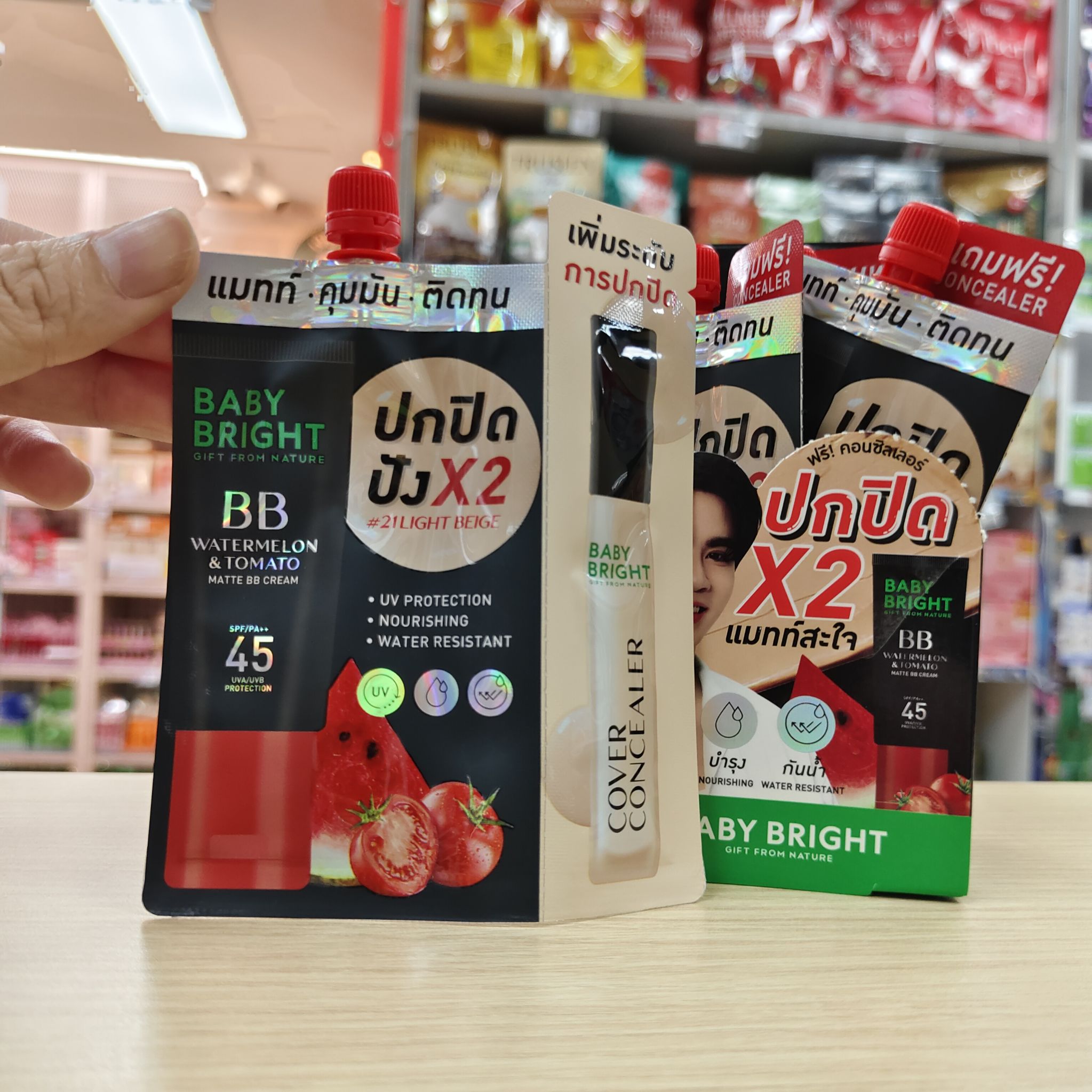 6pcs Baby bright watermelon&tomato matte bb cream spf45 pa++ เบบี้ไบร์ท วอเตอร์เมล่อนแอนด์โทเมโท เอสพีเอฟ 45 พีเอ+++ 7+2x6pcs