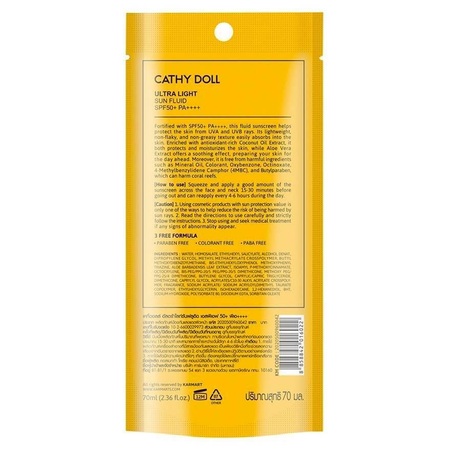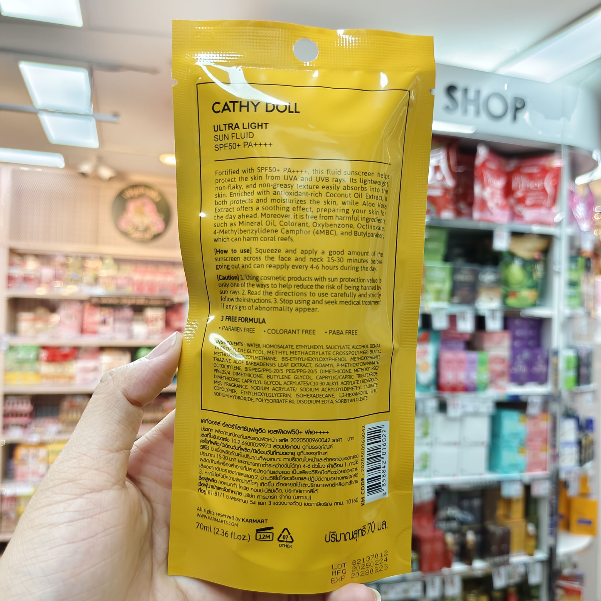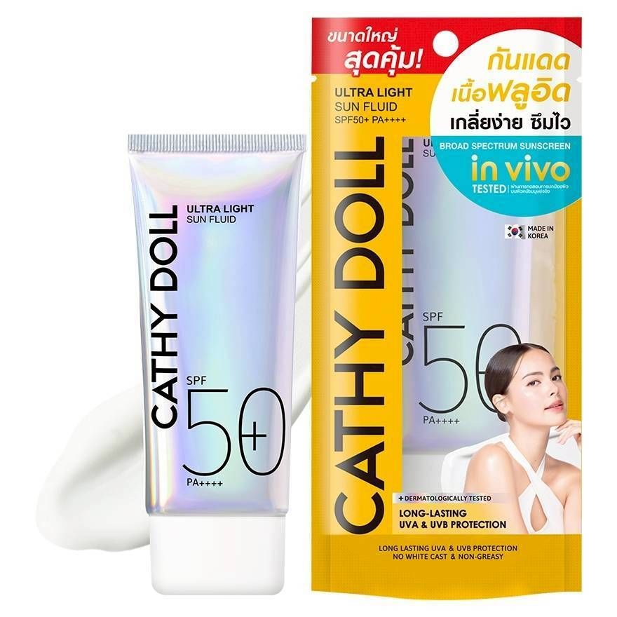 Cathy doll ultra light sun fluid spf50+pa++++ เคที่ดอลล์ อัลตร้าไลท์ซันฟลูอิด เอสพีเอฟ50+พีเอ++++ 70ml.