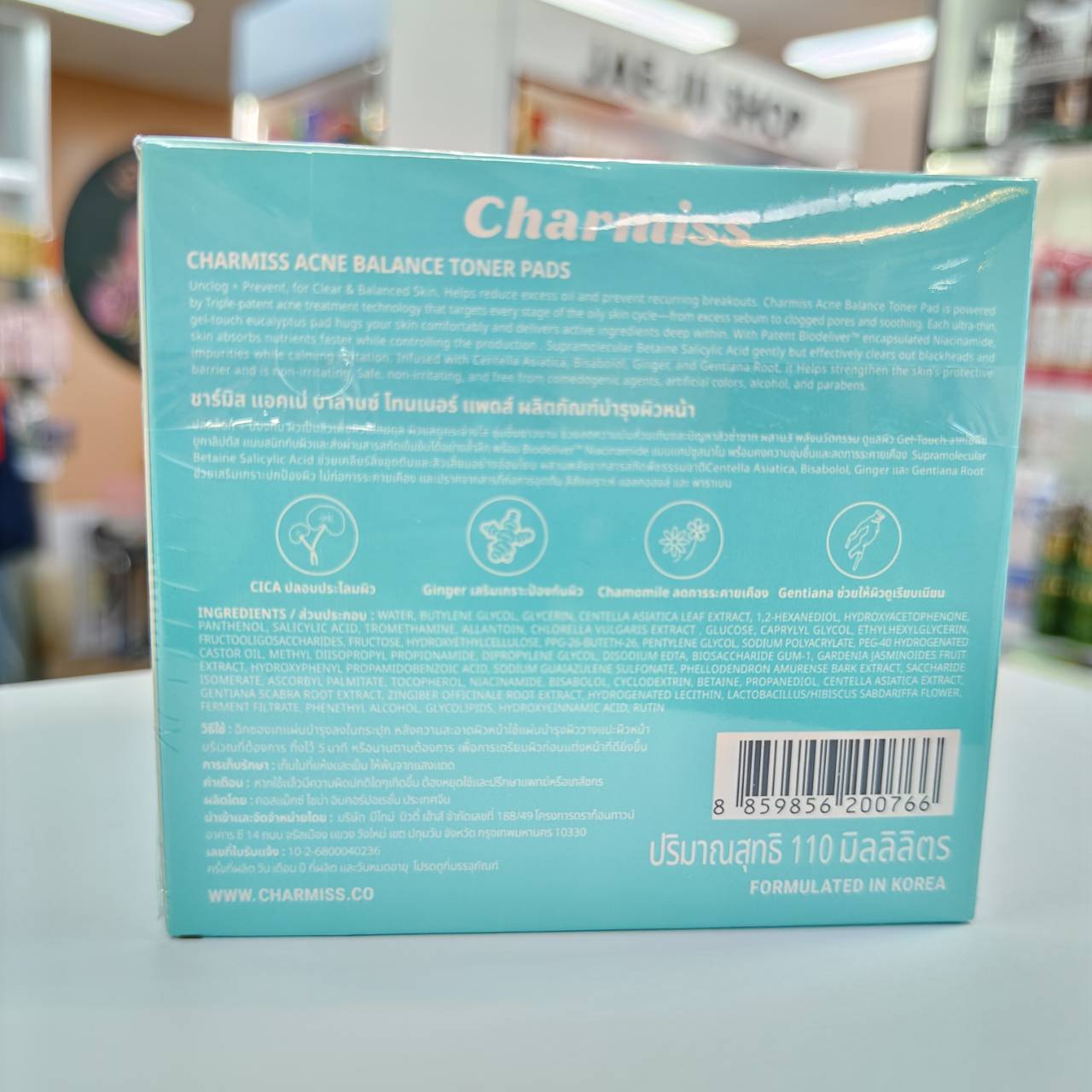 - ชื่อสินค้า: Charmiss Acne Balance Acne&Oil Toner Pads