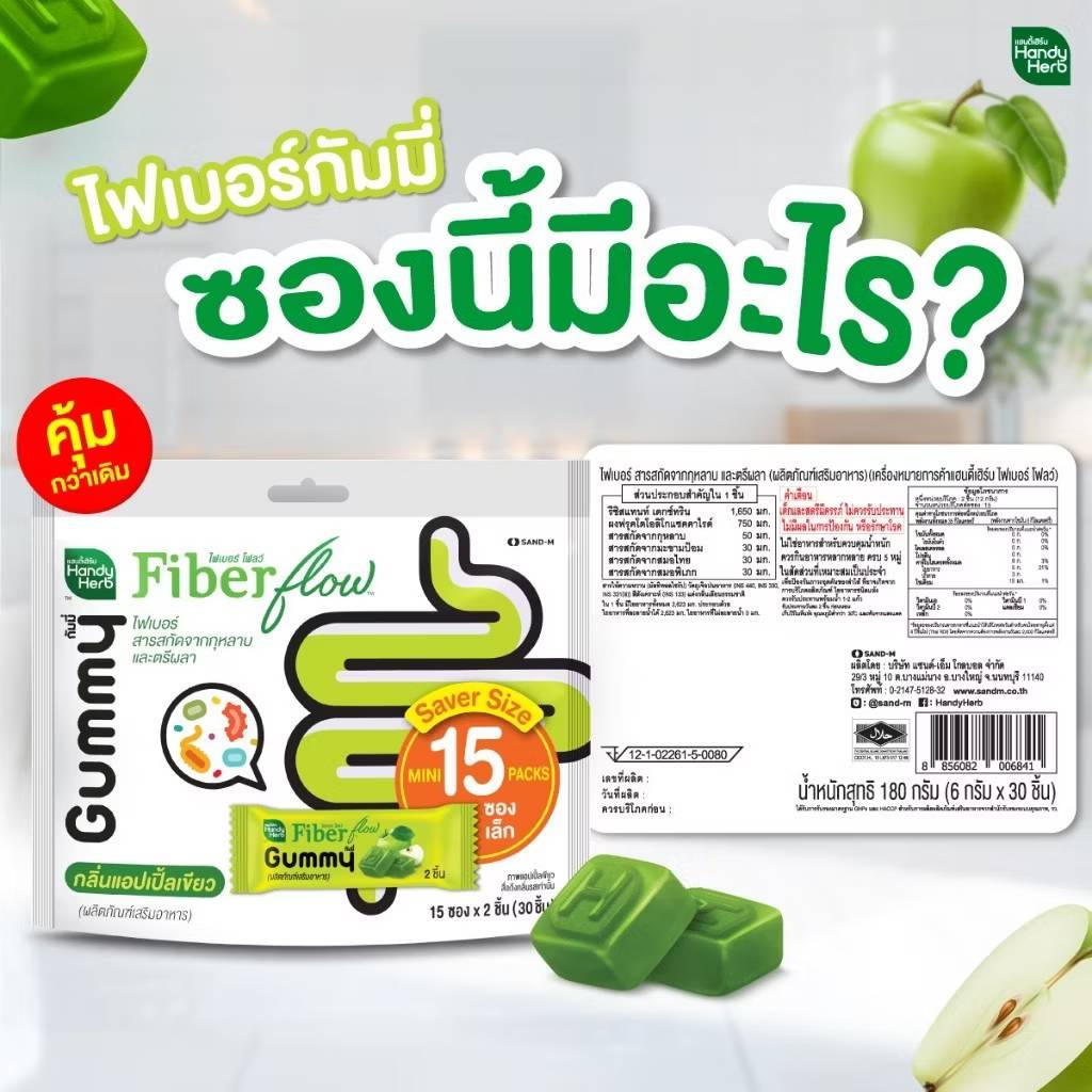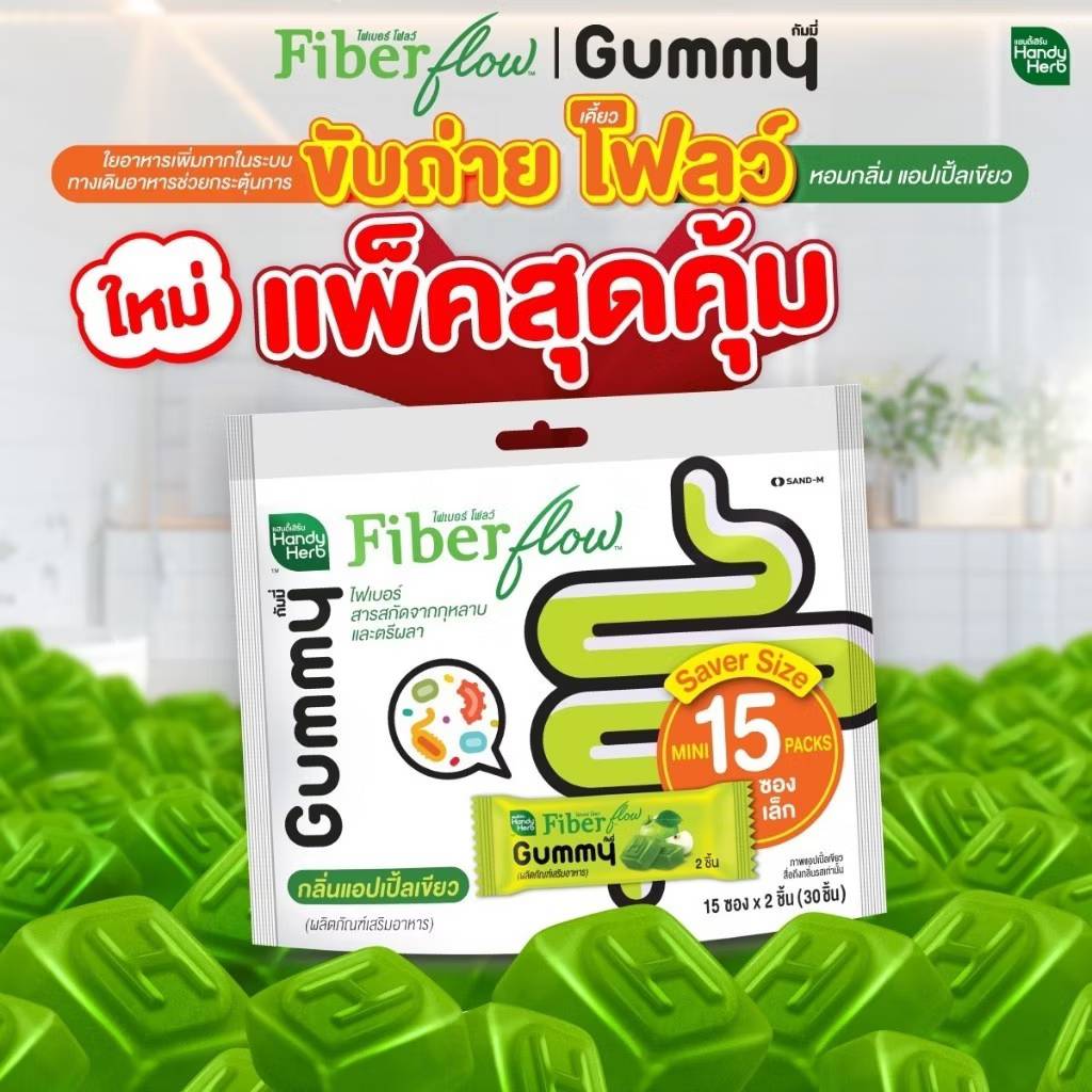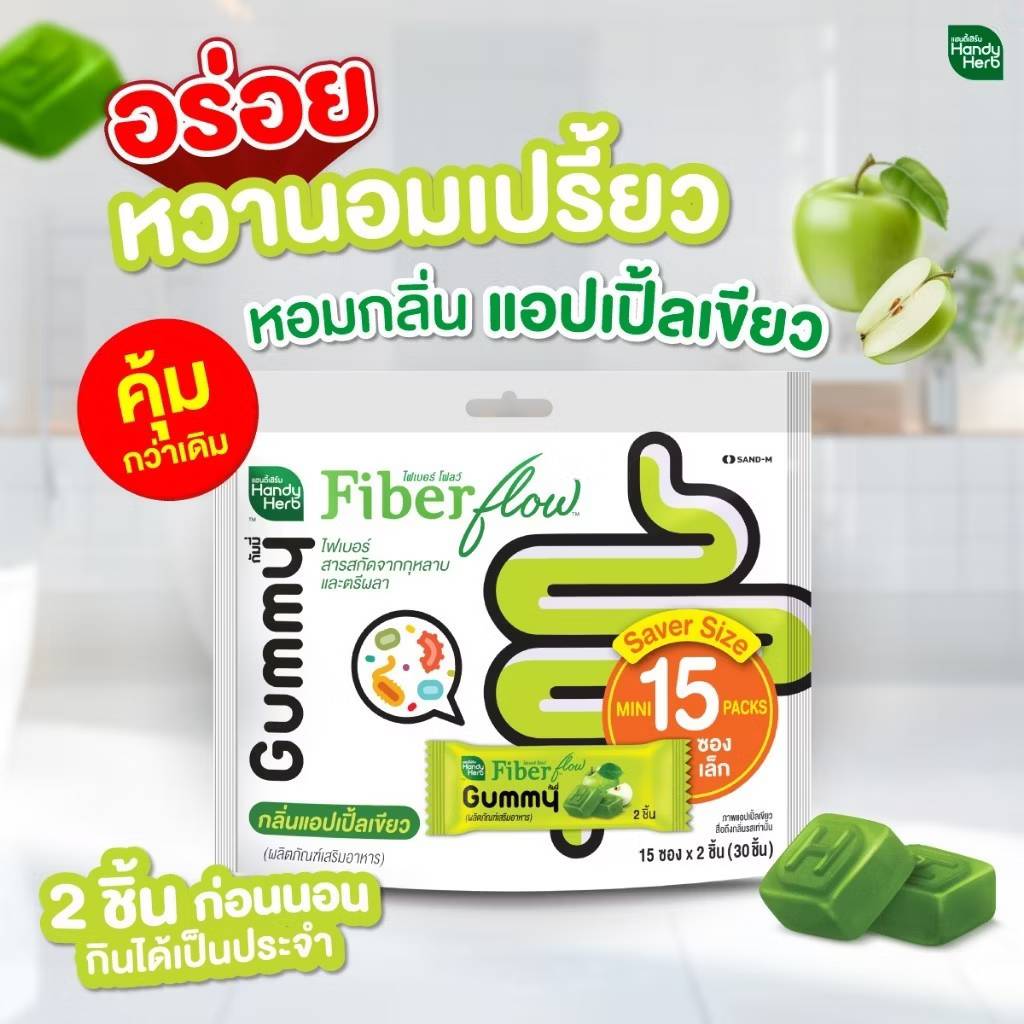 Handy herb fiber flow gummy กัมมี่ ไฟเบอร์ โฟลว์ แอปเปิ้ล 15 pcs