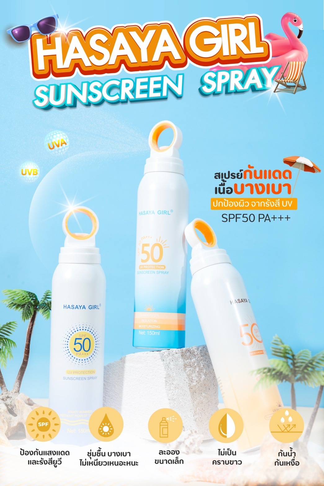 Hasaya girl sunscreen spray ฮาซายา เกิร์ล ซันสกรีน สเปรย์ 150ml.