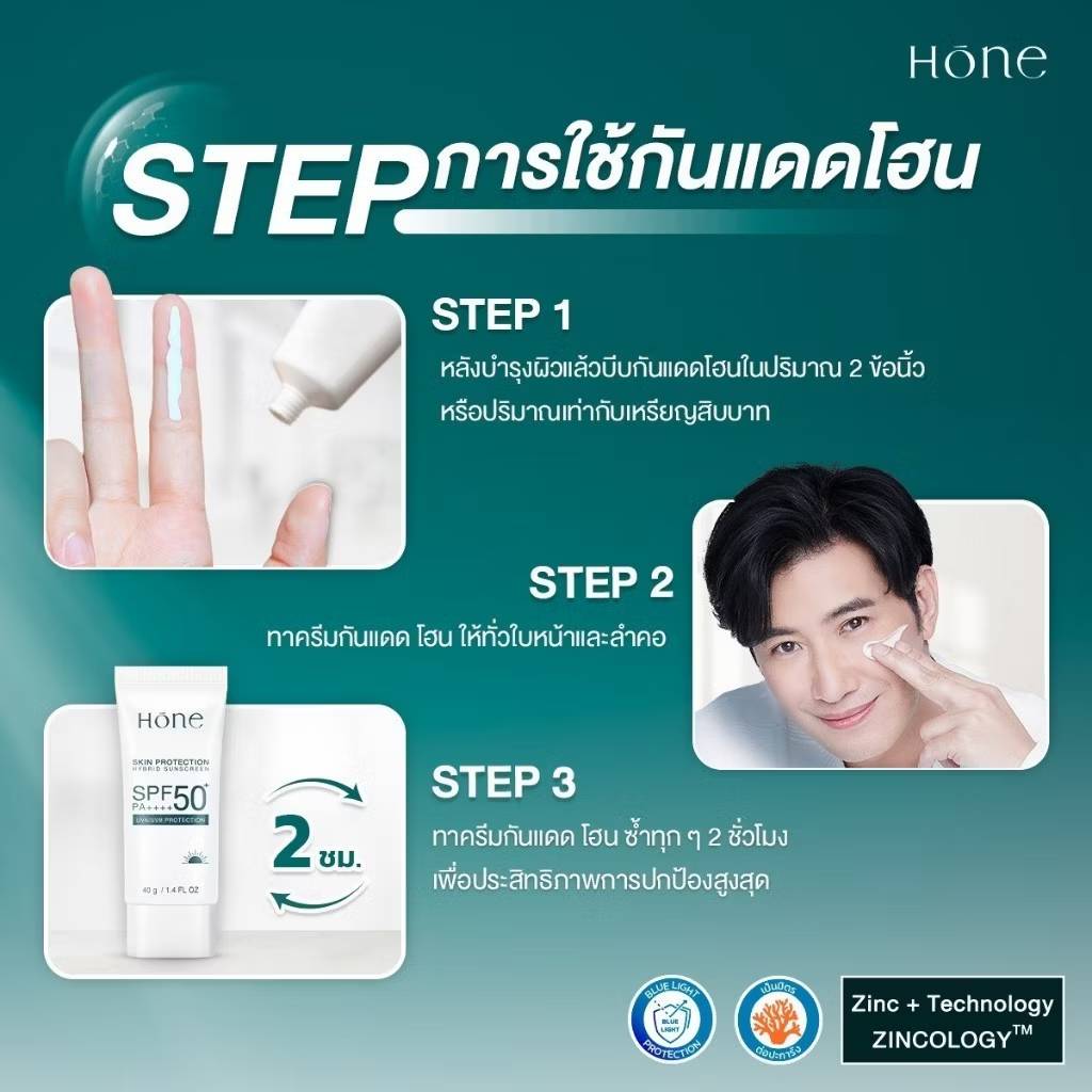 Hone skin protection hybrid sunscreen spf 50+ โฮน สกิน โพรเทคชั่น ไฮบริด ซันสกรีน เอสพีเอฟ50+ pa++++ 40g.