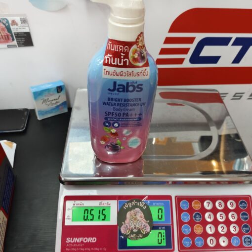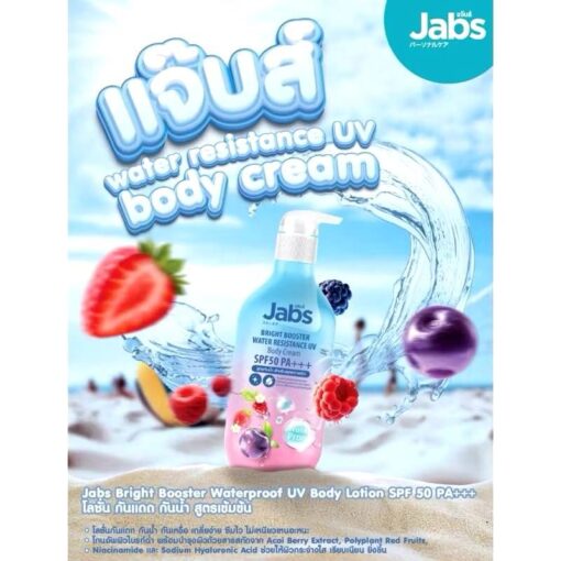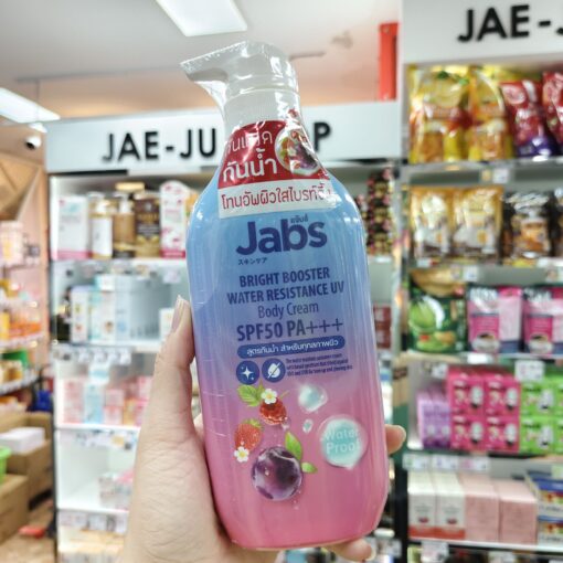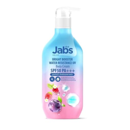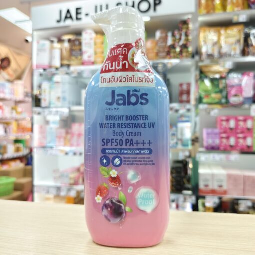 1pc Jabs bright booster water resistance uv body cream spf50 pa+++ 450ml. แจ๊บส์ ไบร์ท บูสเตอร์ วอเตอร์ ครีมยูวี 450มล.