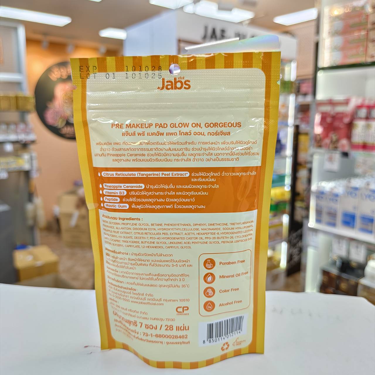 Jabs pre makeup pad แจ๊บส์ พรี เมคอัพ แพด (แบบห่อ) 7sheet x4/28 sheets