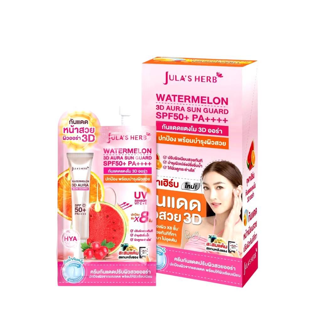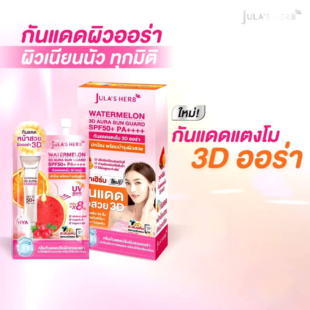 6pcs Jula’s herb watermelon 3d aura sun guard spf50+pa++++ จุฬาเฮิร์บ วอเตอร์เมลอน ทรีดี ออร่า ซัน 7gx6pcs