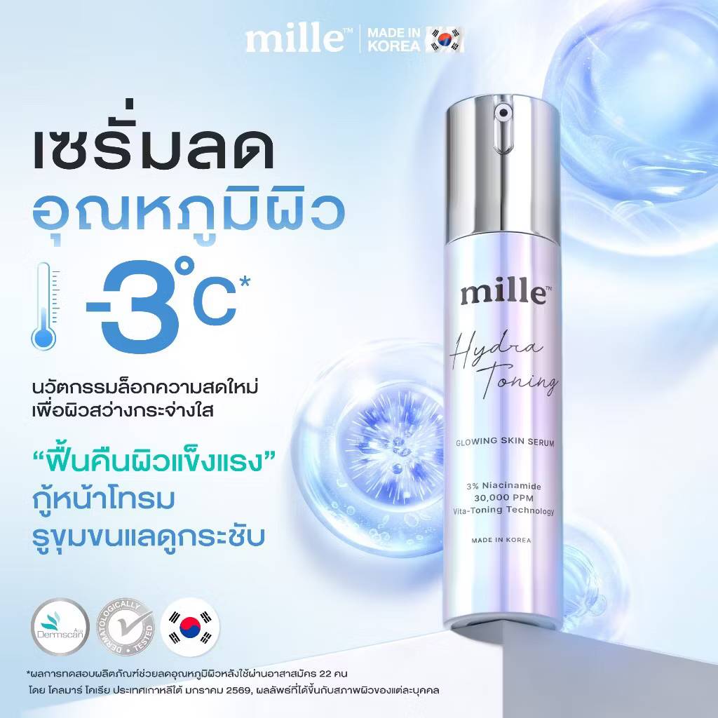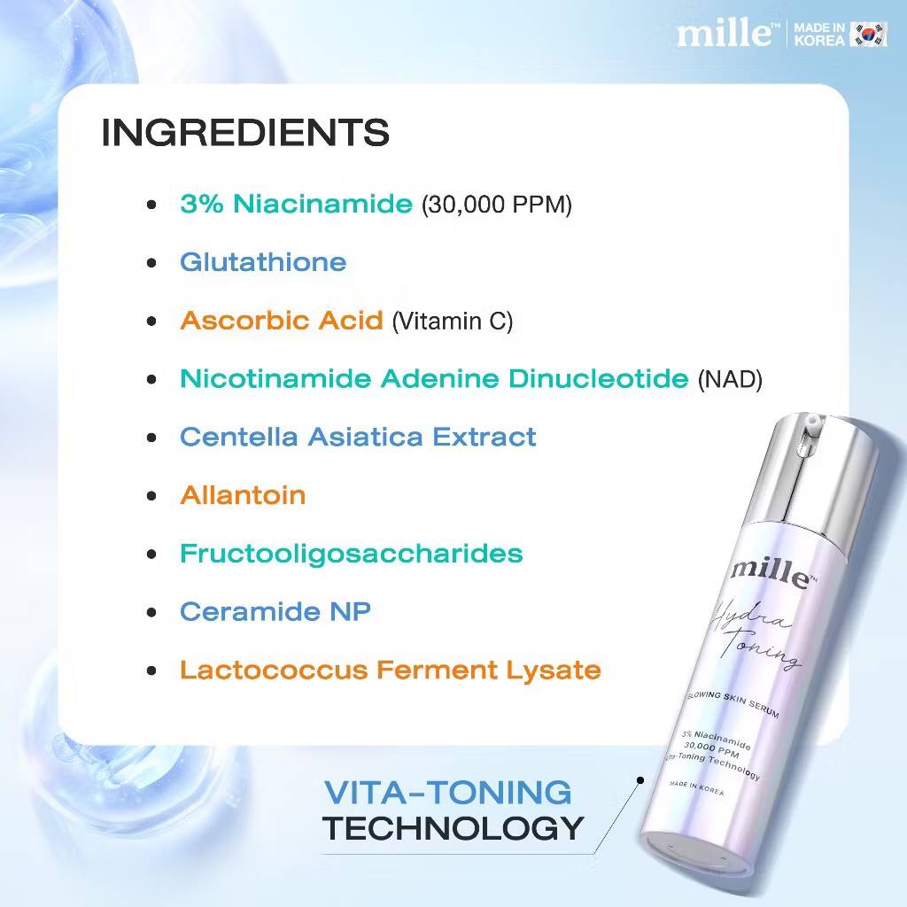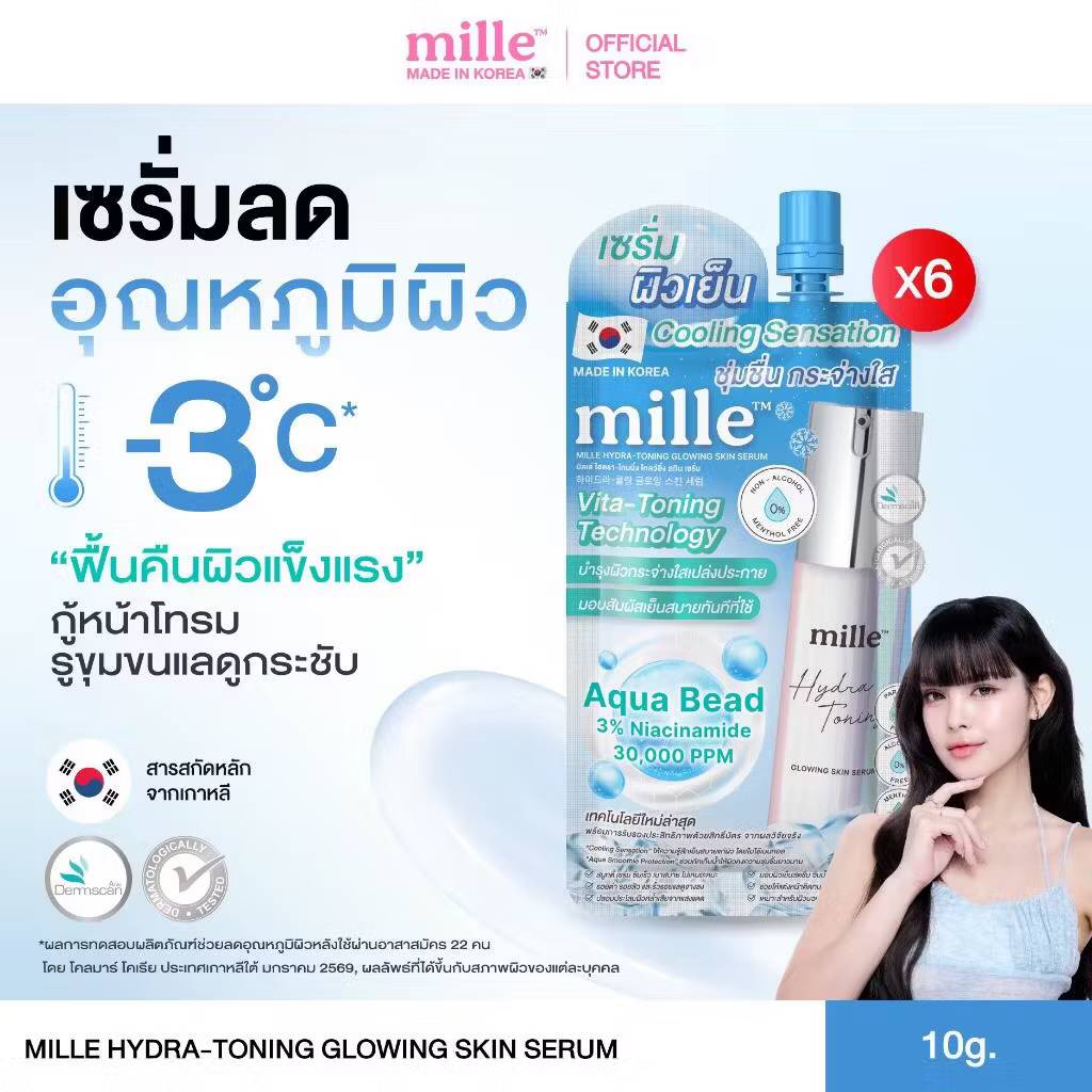 Mille Hydra-Toning Glowing Skin Serum เซรั่มบำรุงผิวให้กระจ่างใส 10mlx6pcs