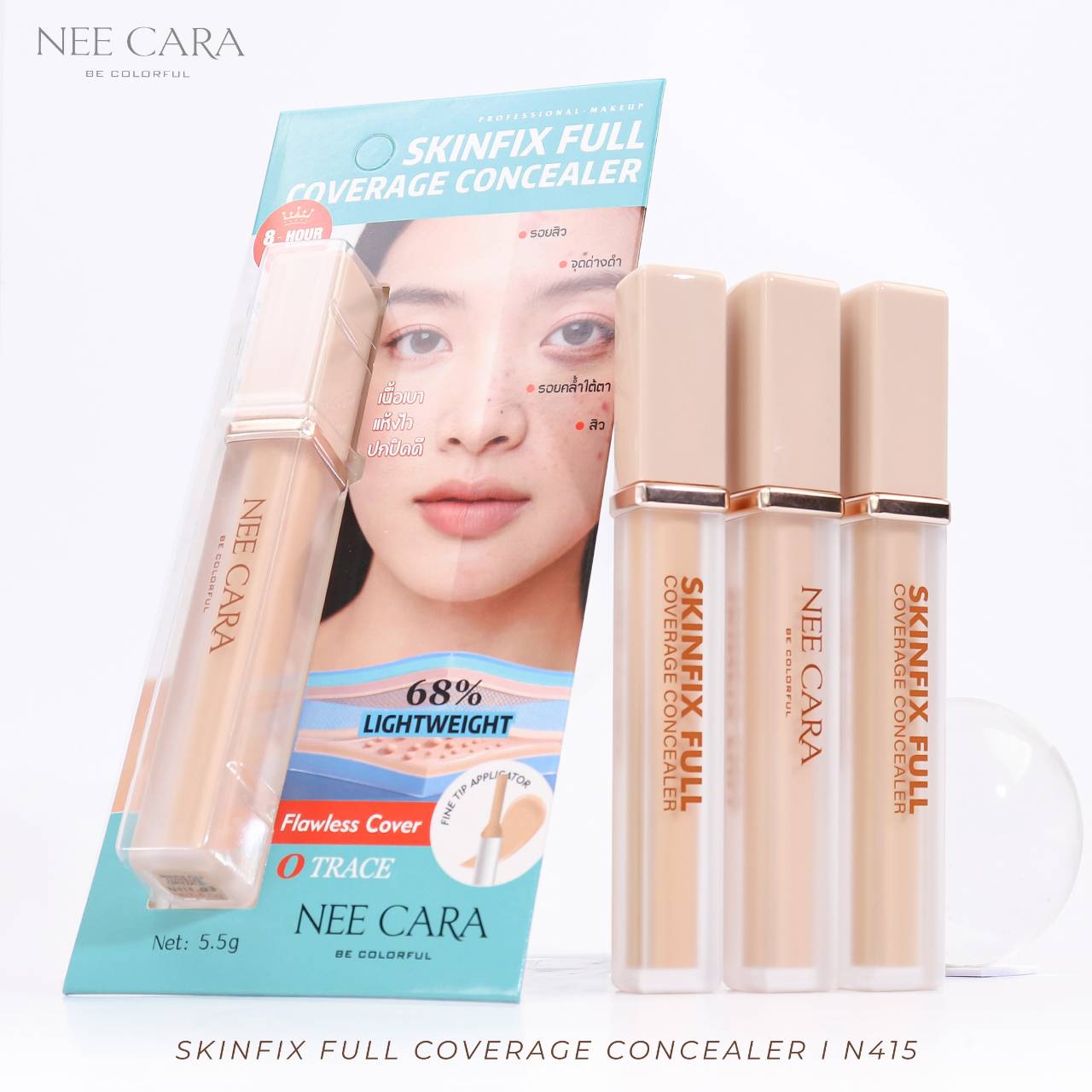 N415 Nee cara skinfix full coverage concealer นี คารา คัลเลอร์ฟูล สกินฟิกซ์ ฟูล คัฟเวอเรจ คอนซีลเลอร์ 5.5g.