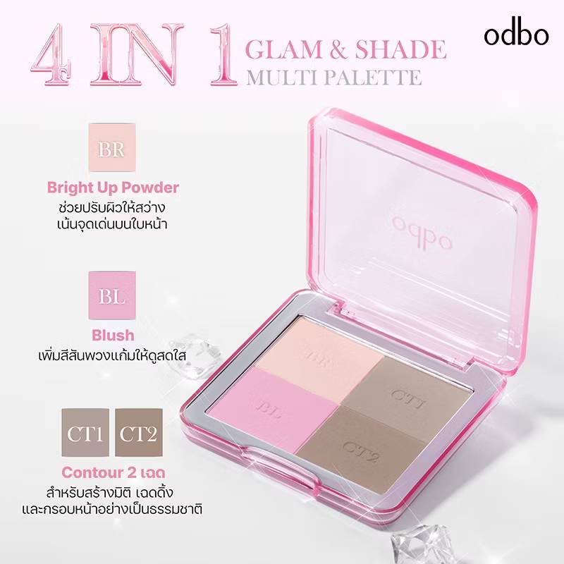 OD1331 odbo glam& shade multi palette โอดีบีโอ แกลม แอนด์ เฉด มัลติ พาเลท 8.5g.