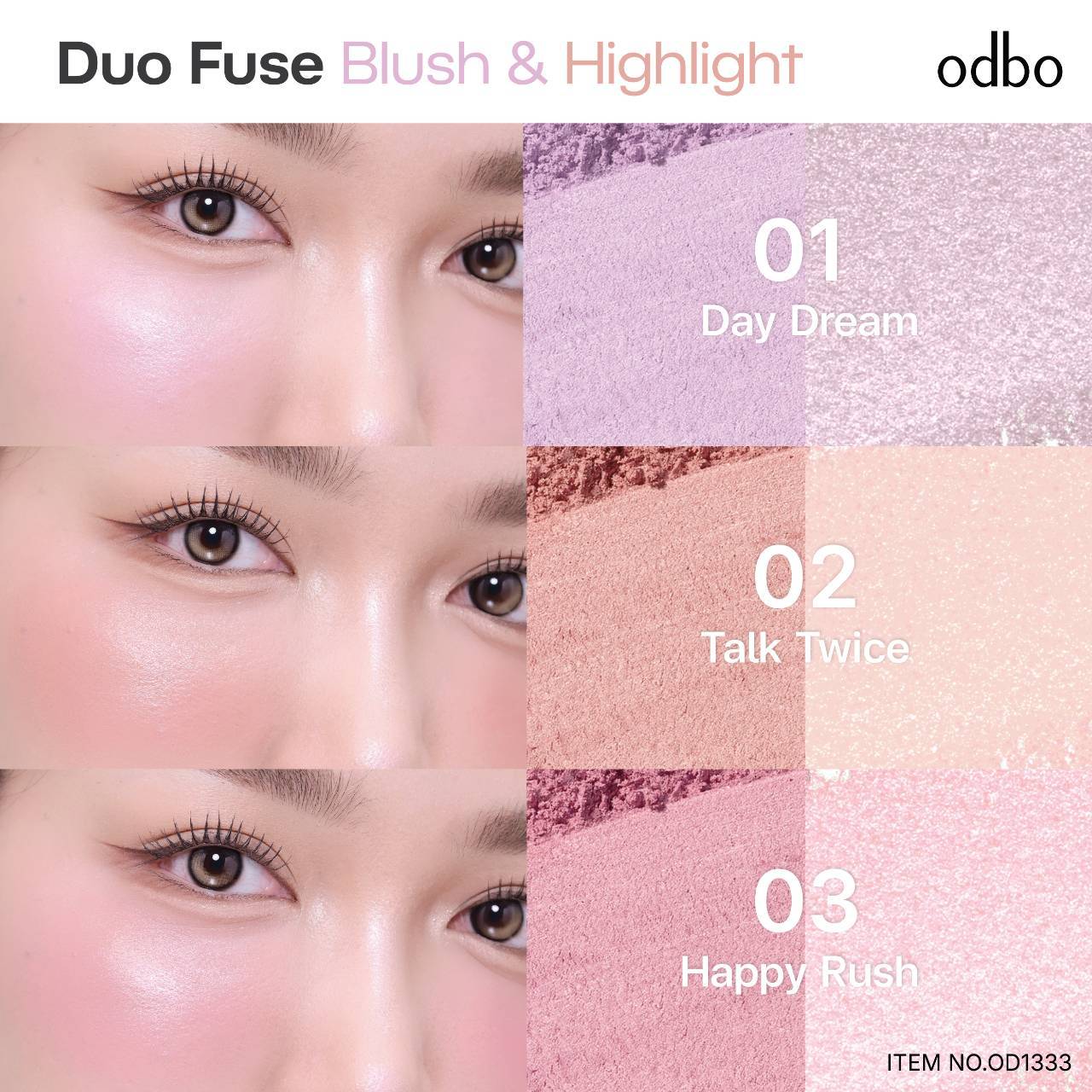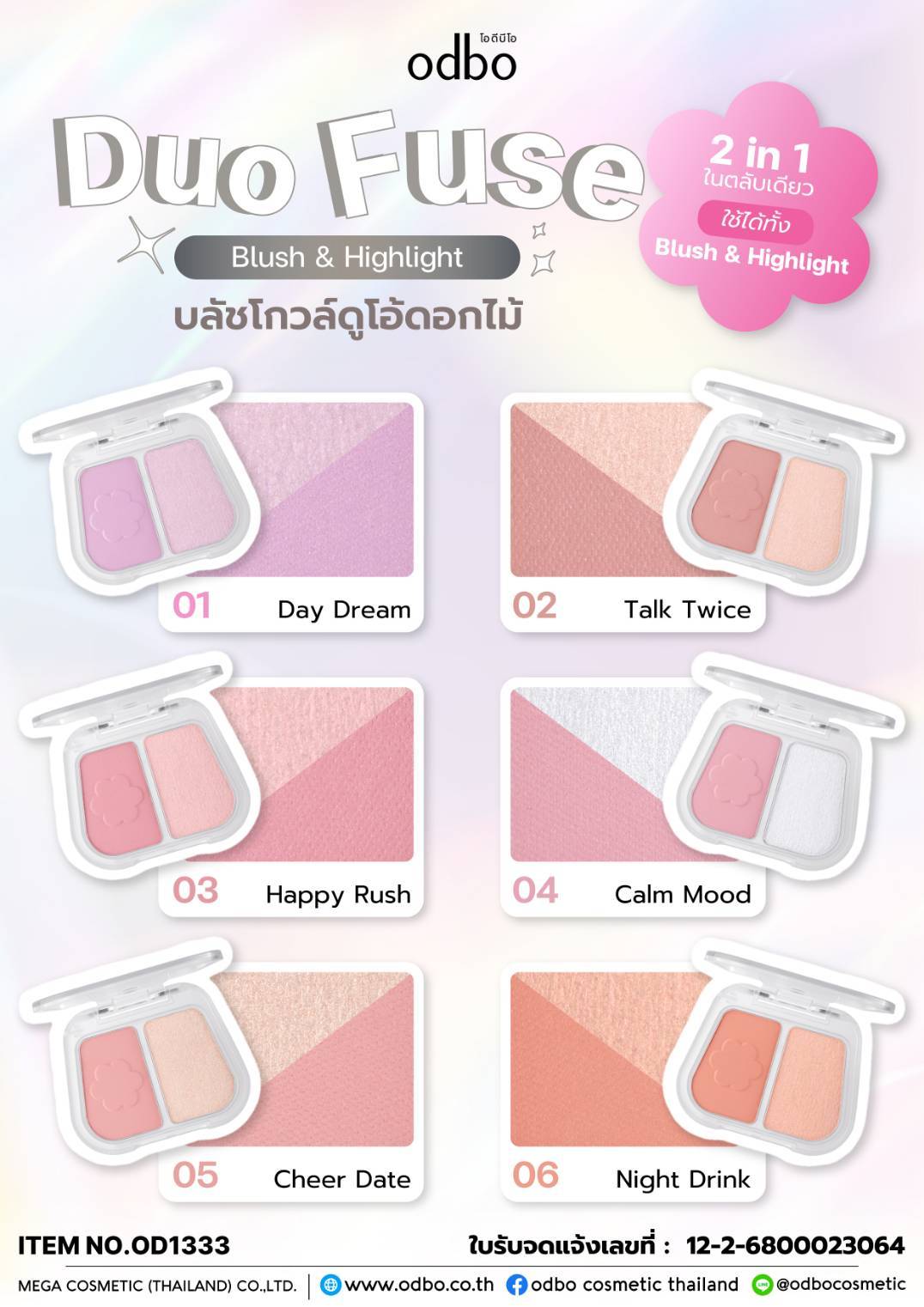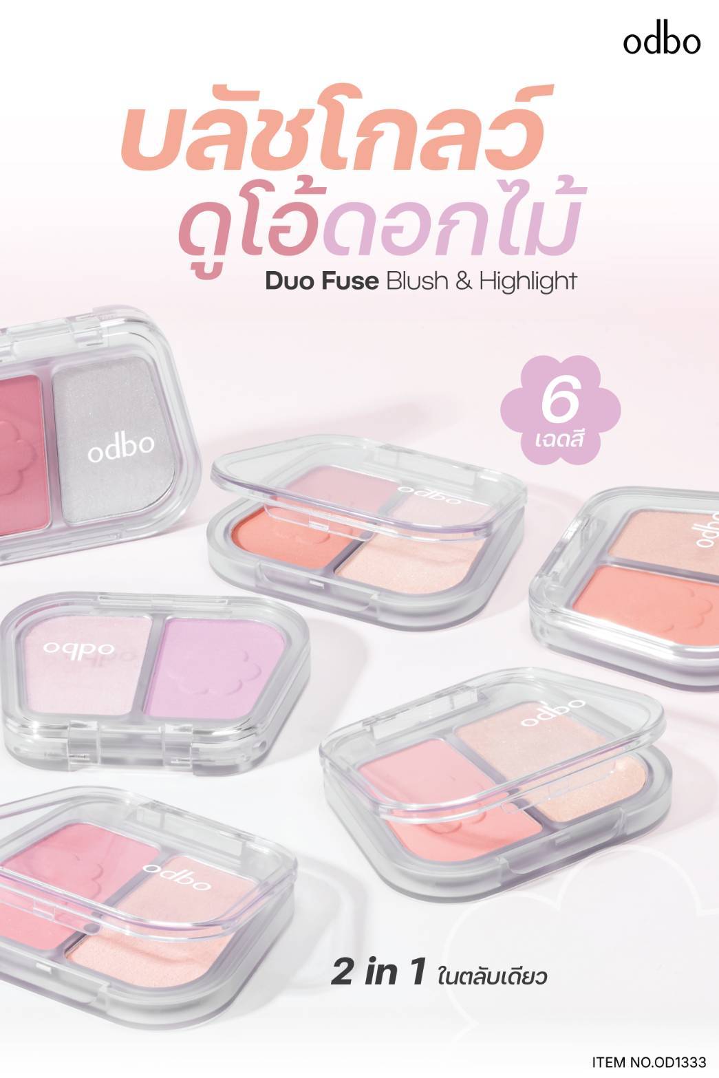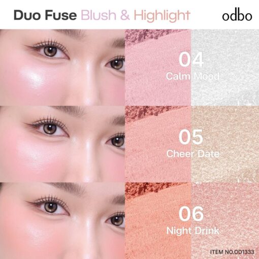 odbo duo fuse blush&highlight โอดีบีโอ ดูโอ้ ฟิวส์ บลัช แอนด์ ไฮไลท์ 3+3g.