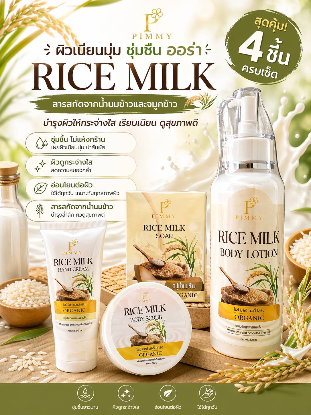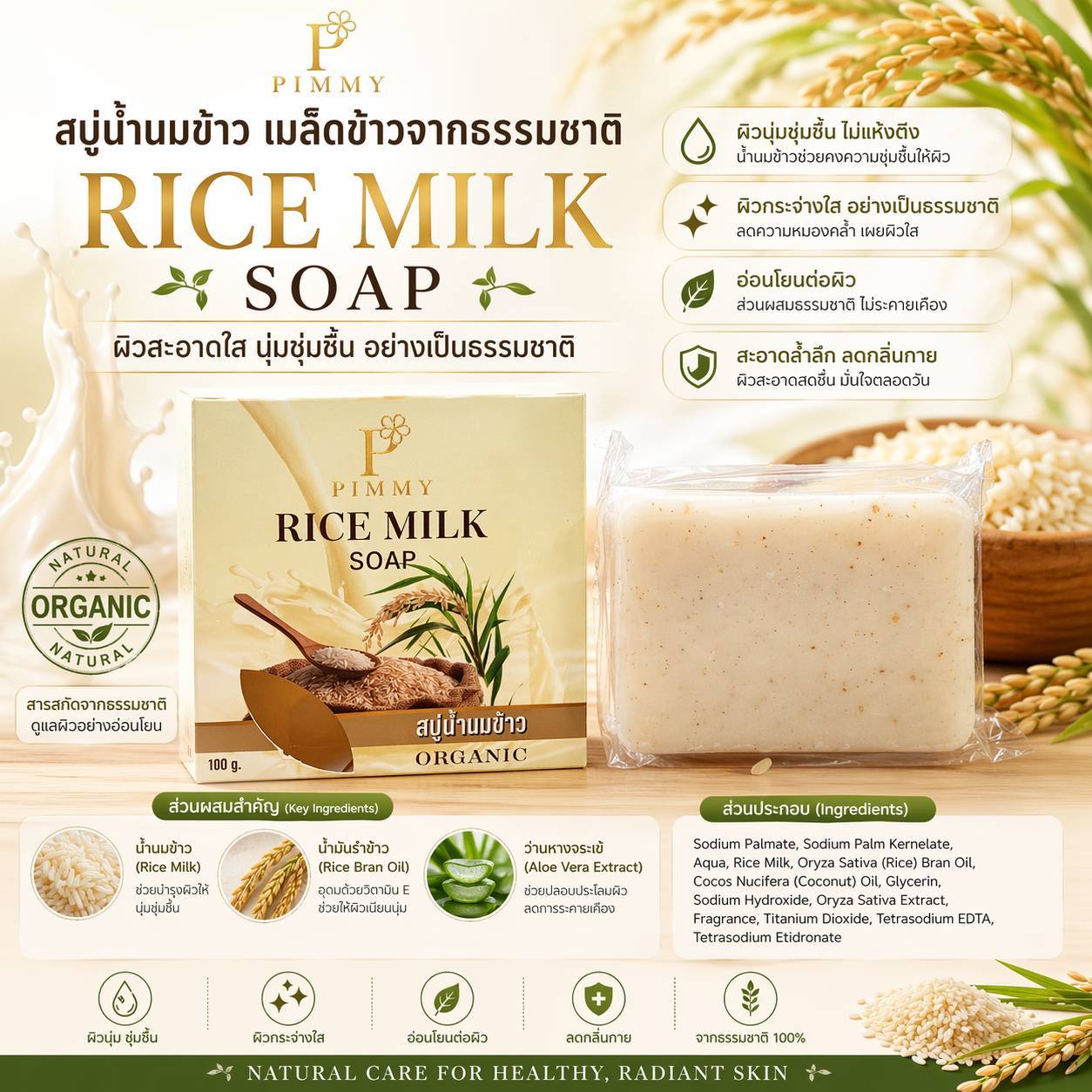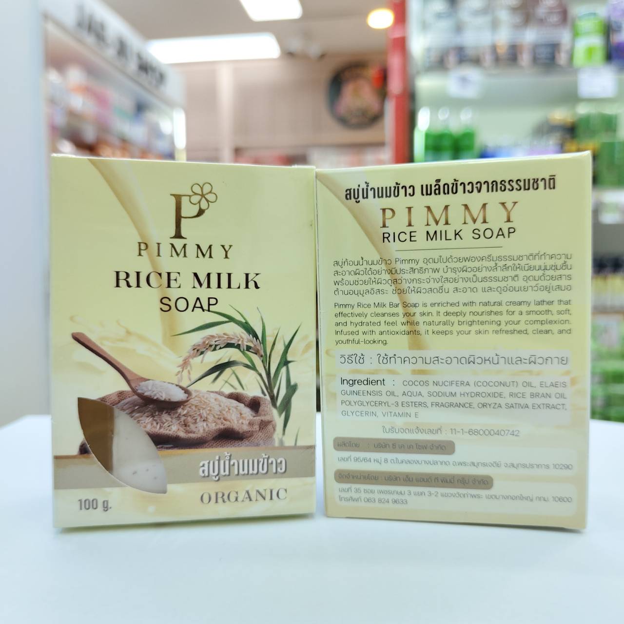 Pimmy rice milk soap ไรซ์ มิลค์ สบู่น้ำนมข้าว 100g