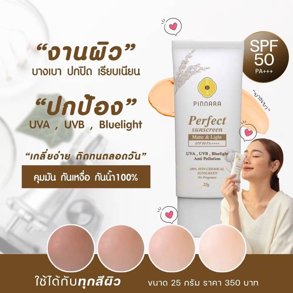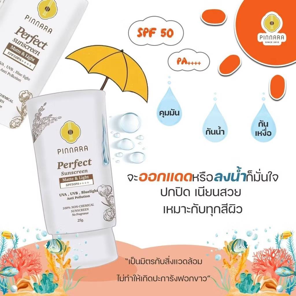 Pinnara perfect sunscreen matte & light spf50 pa++++ พิณนารา 25g.