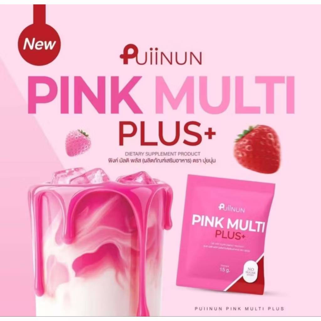 Puiinun pink multi plus+ พิงค์ มัลติ พลัส ตราปุยนุ่น 15gx15pcs