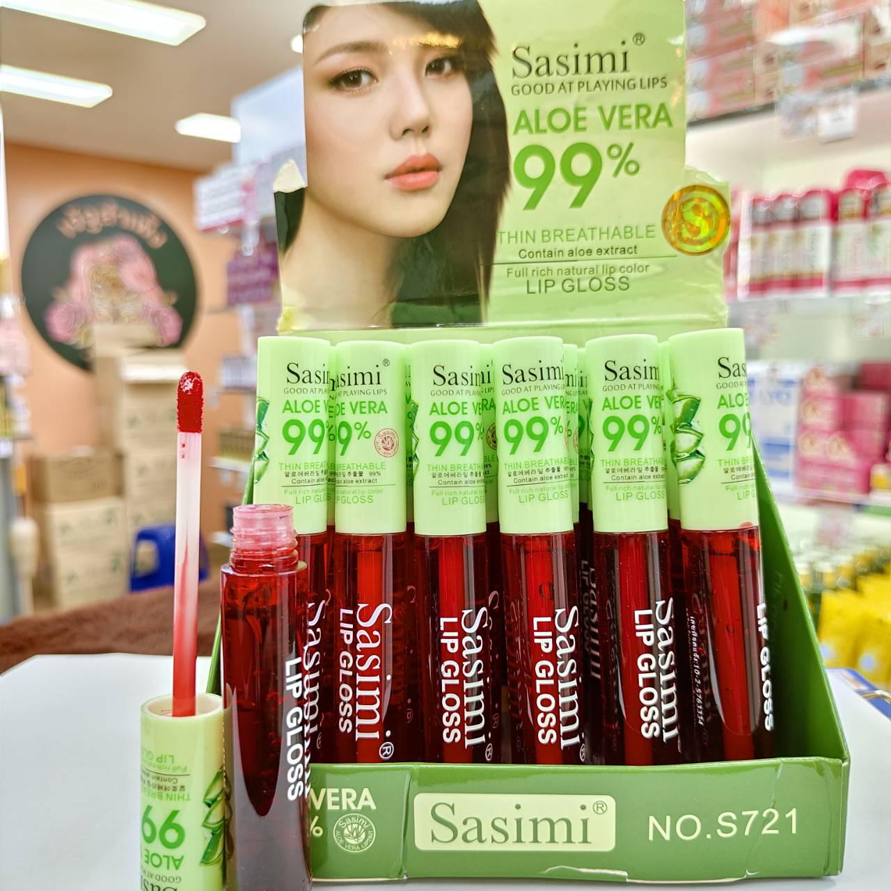S 721 Sasimi aloe vera 99% ลิปติ้นว่านหาง 20g/x24pcs