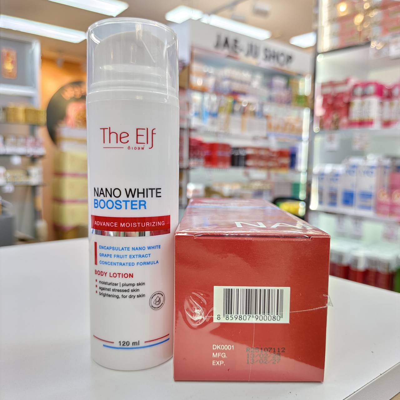 The elf nano white booster advance moisturizing body lotion บูสเตอร์ แอดวานซ์ มอยซ์เจอร์ไรซิ่ง บอดี้ โลชั่น 120ml.