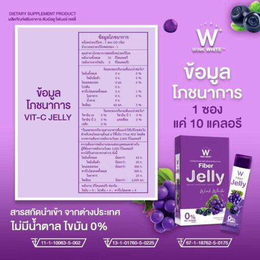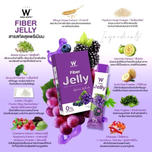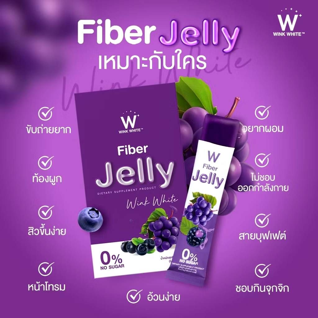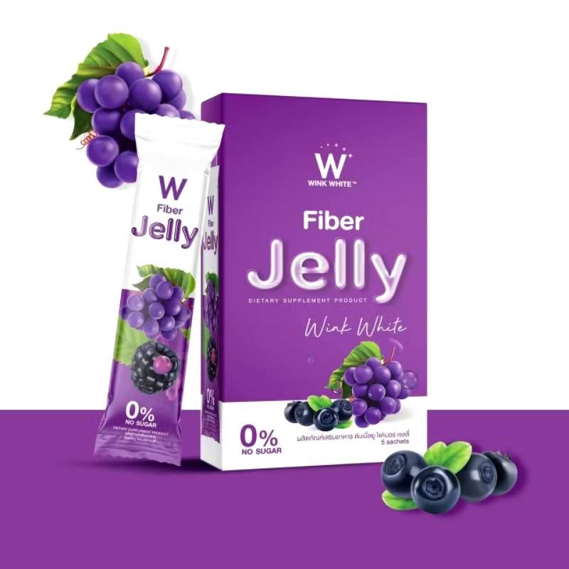 1pc W wink white fiber jelly ดับเบิ้ลยู ไฟเบอร์ เจลลี่(ผลิตภัณฑ์เสริมอาหาร) 5ซอง*25กรัม